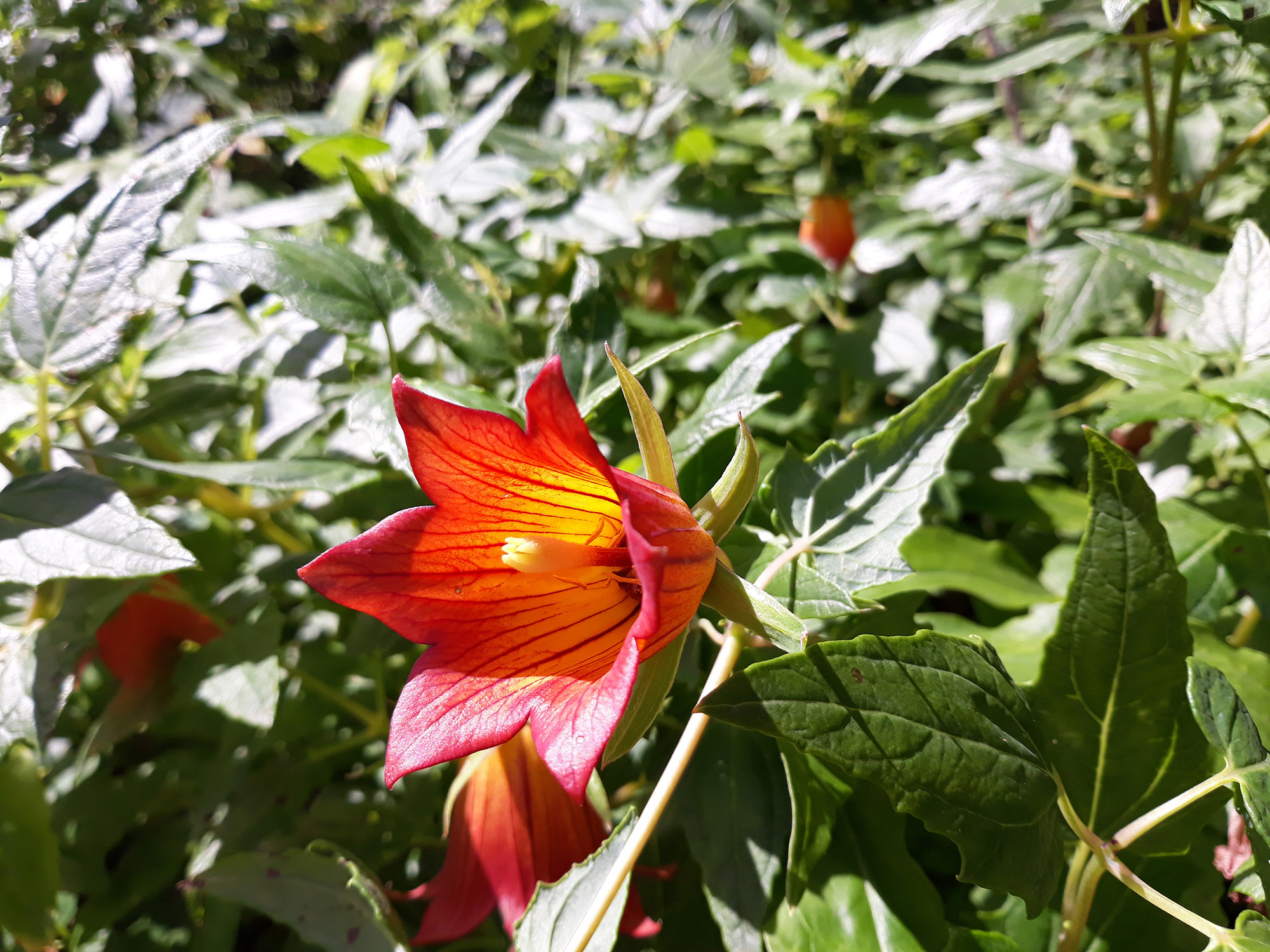 Canarina canariensis is a species of flowering plant in the bellflower family Campanulaceae, commonly known as the Canary Island bellflower, and known locally as bicácaro. It is a protected plant.