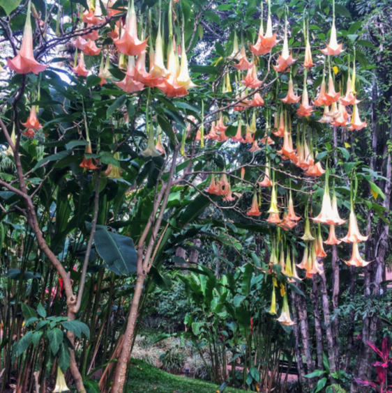 Angel’s Trumpet is a beautiful but deadly poisonous plant, so be careful with it. All part of the plants and the seeds contains several alkaloids. The appearance of the plant is like a large bush, with the colorful large bell flowers and it originates from tropical regions of South America, along the Andes from Venezuela to northern Chile, and also in south-eastern Brazil. However, the plant also appeared in certain tropical areas within North America, Australia, Africa and Asian continent.